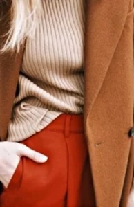 Le Beige et le Camel (tons neutres) + un rouge (couleur forte)