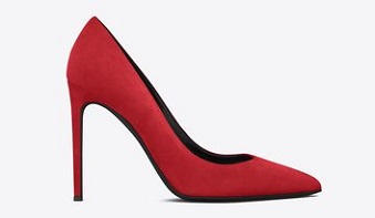 en remplaçant les escarpins basiques de couleur noir par des escarpins rouges,